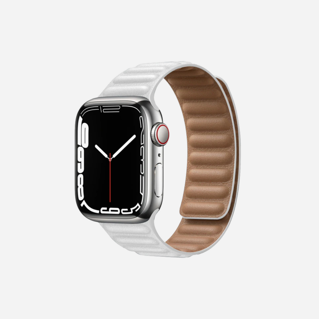 A maneira totalmente nova de usar o Apple Watch. Está pulseira de couro macio. Foi projetado pensando em você, é feito de couro, super confortável e flexível e vem completa de imas totalmente ajustável para obter exatamente o ajuste que você deseja. Sem machucar e mantendo a segurança do seu Apple Watch.