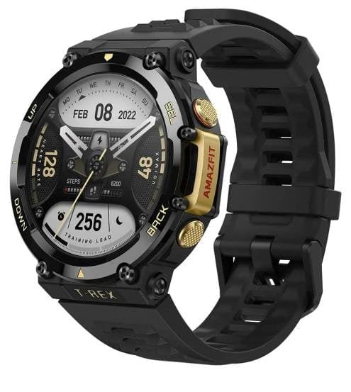 Com visual arrojado e inovador, uma tela AMOLED de 1,39 polegadas, sensor de pressão sanguínea BioTracker, conexão Bluetooth 5.0, resistência de nível militar, bateria de até 500mAh com duração de até 24 horas e uso diário de 45 dias em uso econômico, resistência ao calor de 70 °C e ao frio de -40 °C, tudo isso e muito mais presente no moderno smartwatch Amazfit T-Rex 2.